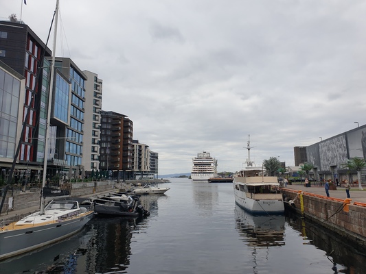 Oft haben die AIDAschiffe an der Festung Akerhus festgemacht, aber diesmal liegen wir wieder in der Nähe eines sehr modern gestalteten Wohnviertels und von dort aus ist die Innenstadt auch gut fußläufig zu erreichen.