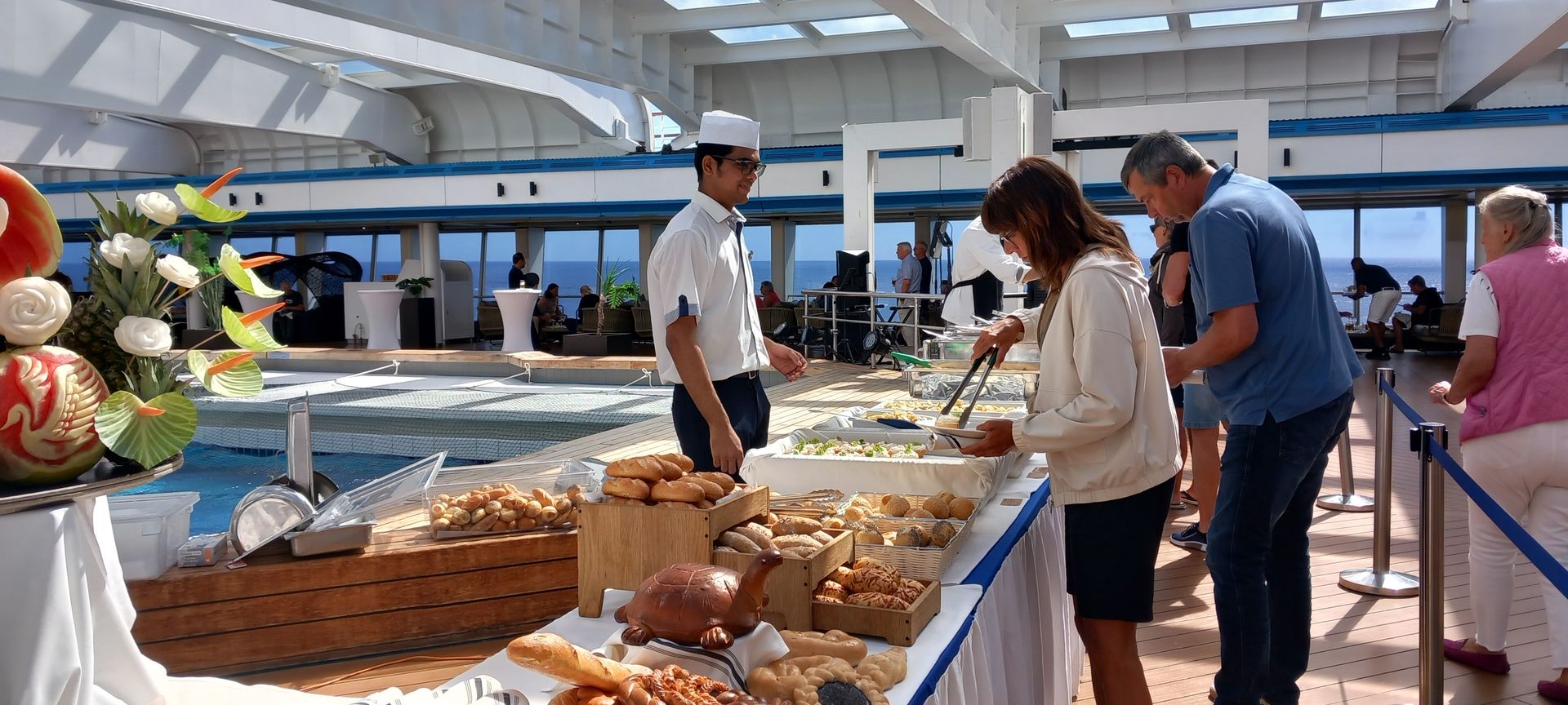 Es waren ca. 100 Weltreise Passagiere an Bord und ca. 130 die die kleine Weltreise…