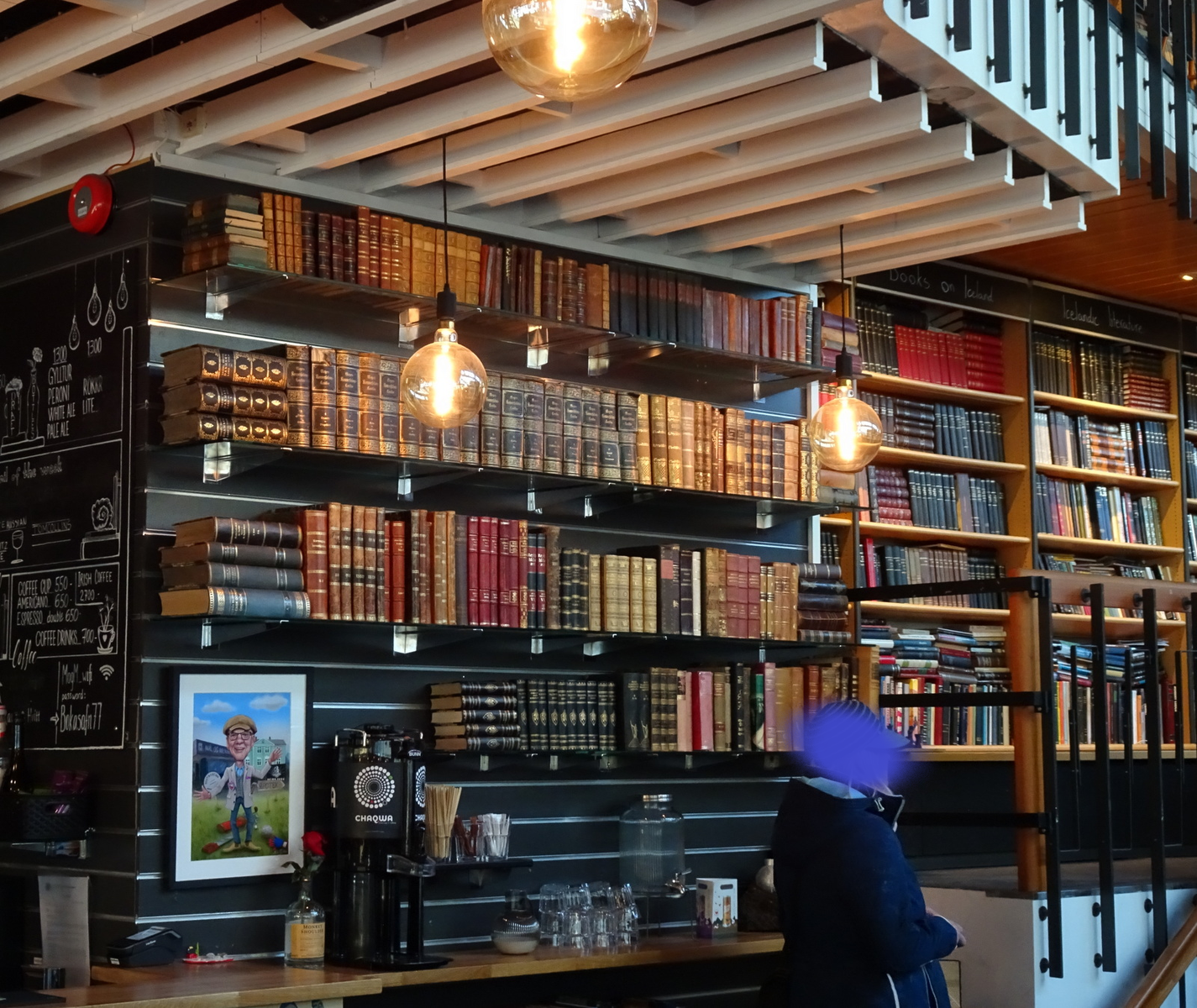 Im Vorbeigehen fällt ein Lokal dadurch auf, das an den Wänden und auch im Raum auf mehreren Ebenen prall gefüllte Bücherregale sind. Irgendwie also ne Lesekneipe.