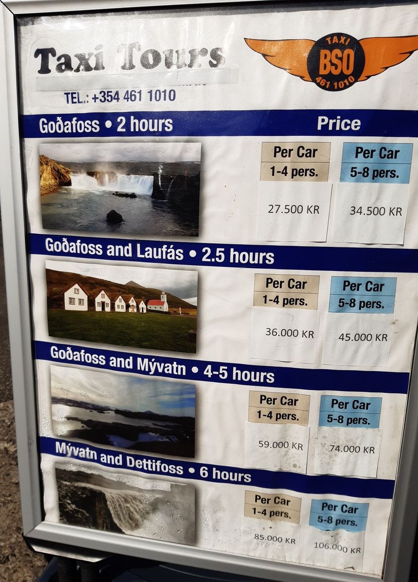 Zumindest sind es bei der Myvatn und Godafoss - Tour etwa 430 Euro per car . Okay, die werden jetzt statt Nutzung des Thermalbades noch intensiver mehr von dem Gebiet sehen, aber der Eintritt von über 40 € war bei unserem Ausflugspreis schon einberechnet.