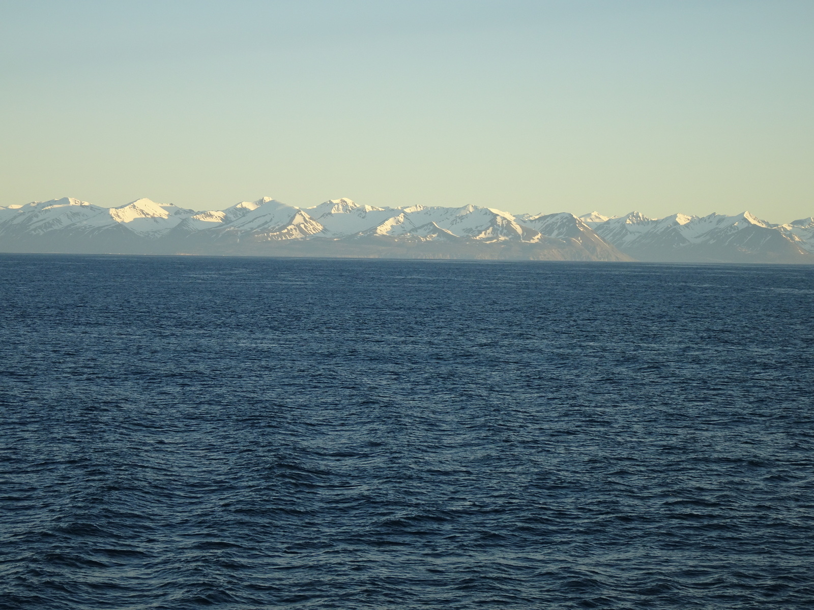 Noch im Fjord aber wieder das übliche Spielchen von der Brücke. „Wale in Sicht“! ...Natürlich Backbord voraus.