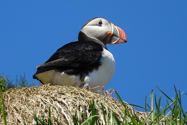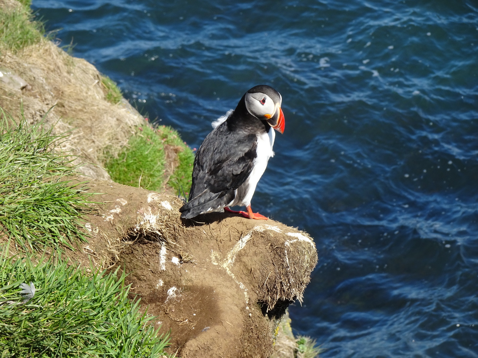 Und die Reiseleiterin trägt jetzt im Vorfeld aber mal ganz dick auf. Sie gibt anders als sonst, großspurig sogar „eine Garantie auf Sichtung der Tiere!“ Ausgerüstet mit Feldsteher geht es den Weg herunter zur ornithologischen Expedition. Aber dort angekommen merken wir schnell, das Fernglas mitzunehmen war ziemlich albern. Braucht man gar nicht. Die Puffins sind -anders als noch bei der Tour in Reykjavik- hier so dermaßen nah und wenig scheu, dass man sich mit diesem Wissen den Ausflug damals hätte sparen können.