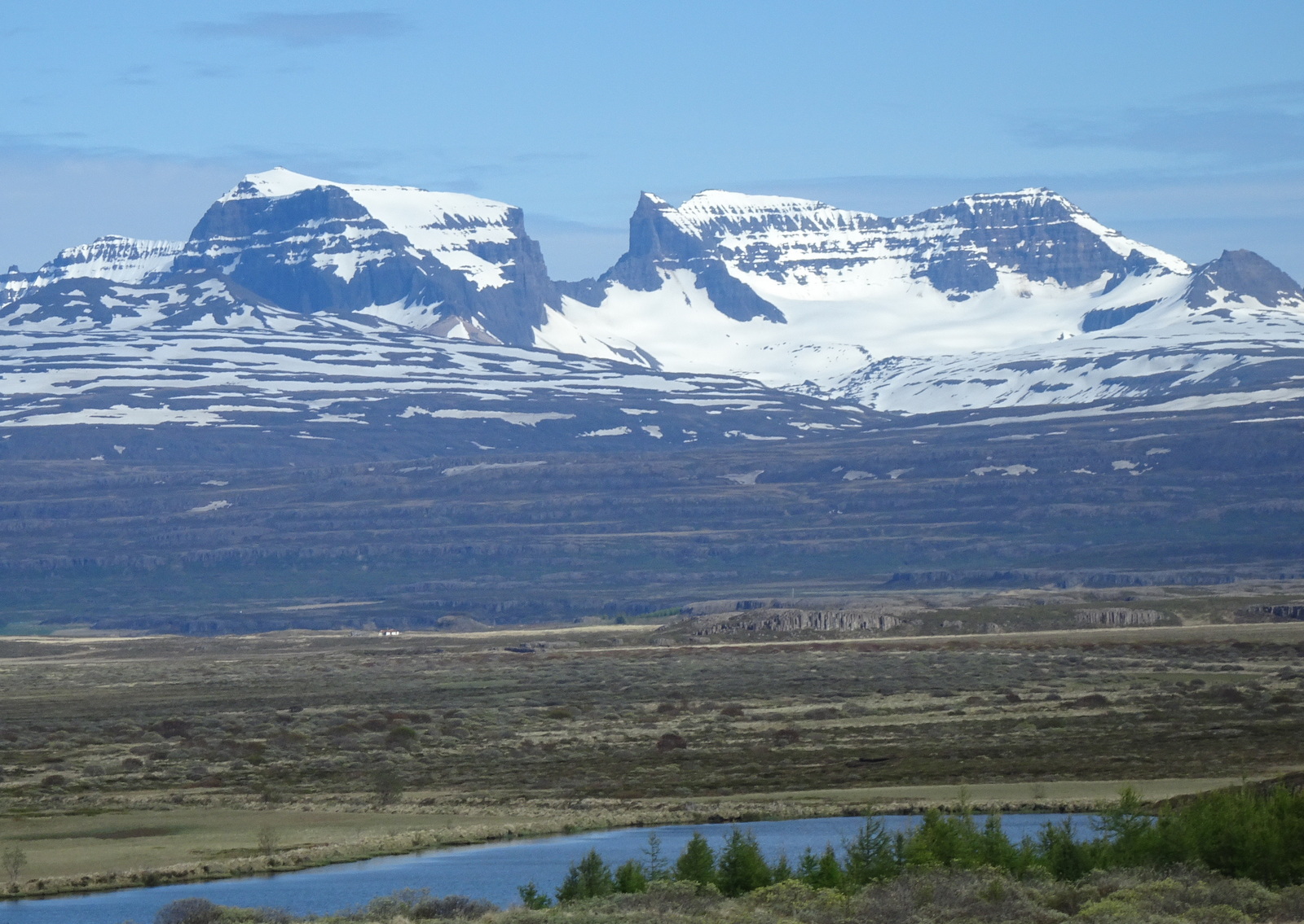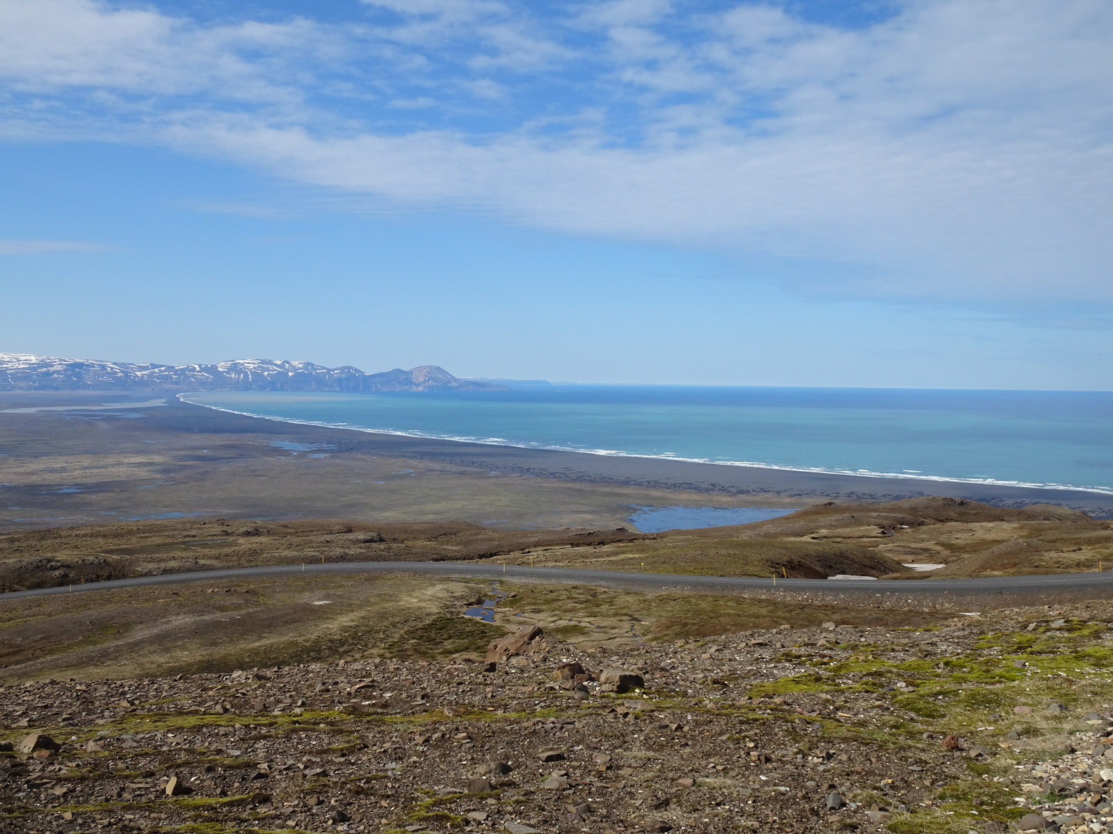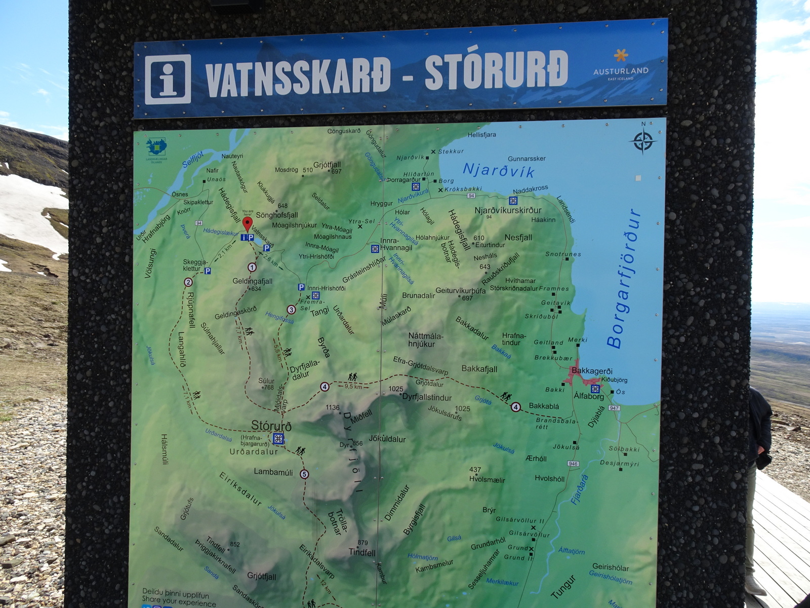 Zuvor auf der Bergkuppe, welche Börgarfjördur von diesem Tal mit dem See trennt, hatten wir noch beim Scheitelpunkt des Bergpasses an einem Aussichtspunkt Vatnsskard angehalten