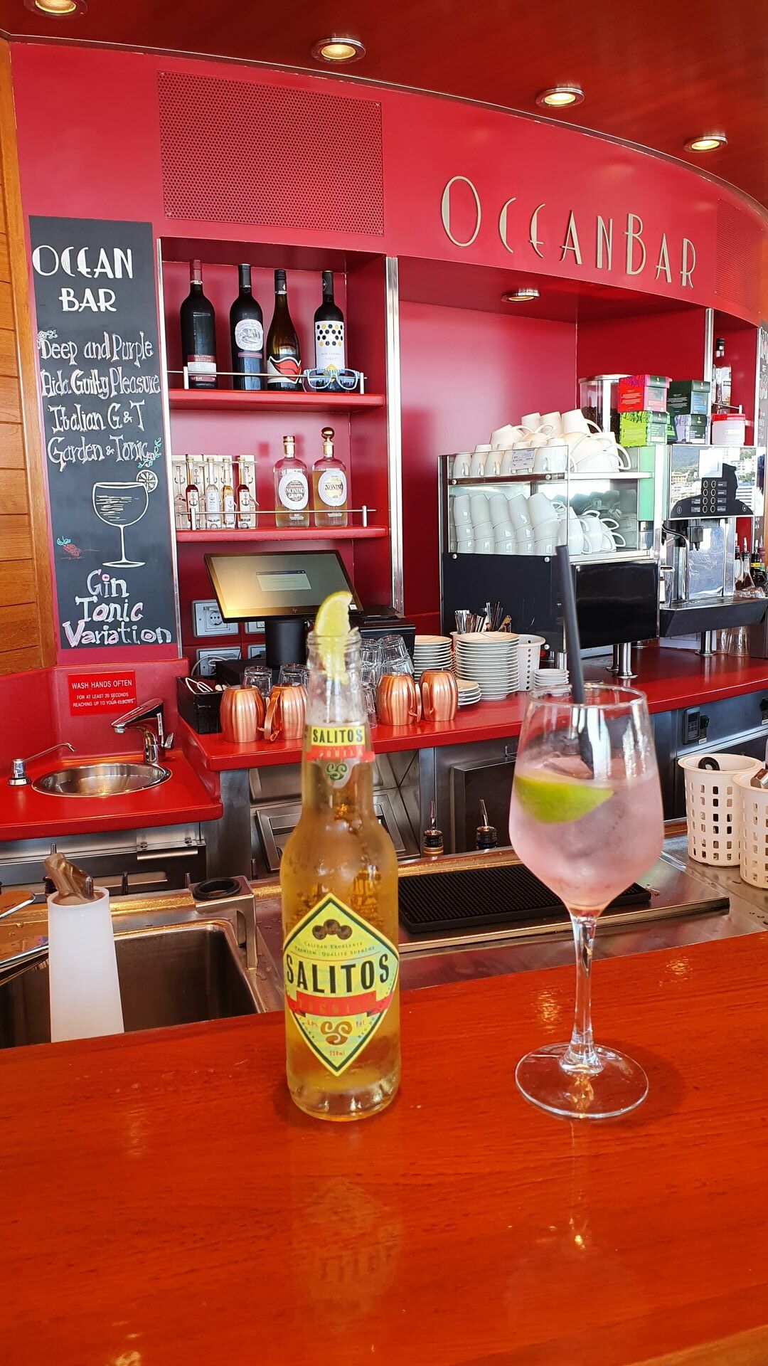 Anschließend machten wir eine kleine Tour über das Schiff und stießen an der Ocean Bar um 10:15 Uhr mit einem Salitos und einm Lilet Wild Berry auf den Urlaub an.