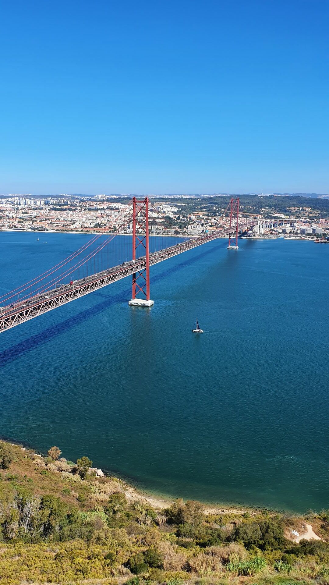 Die Sichtverhältnisse waren ausgezeichnet und um diese Uhrzeit war es noch schön leer am Fuße der Statue. Wir machten wunderschöne Bilder der Statue sowie von der Brücke des 25. Aprils. Anschließend fuhren wir hoch zur Aussichtsplattform der Statue. Die Aussicht war Atemberaubend. Nachdem wir uns satt gesehen hatten, liefen wir zu Fuß hinunter in die Stadt Almada und kehrten in ein nettes Cafe ein, wo wir einen Americano tranken und uns leckere Pastel de Nata gönnten. Danach riefen wir uns wieder ein Uber und fuhren zurück zur Fährstation und setzten mit der Fähre wieder über auf die andere Seite der Stadt.