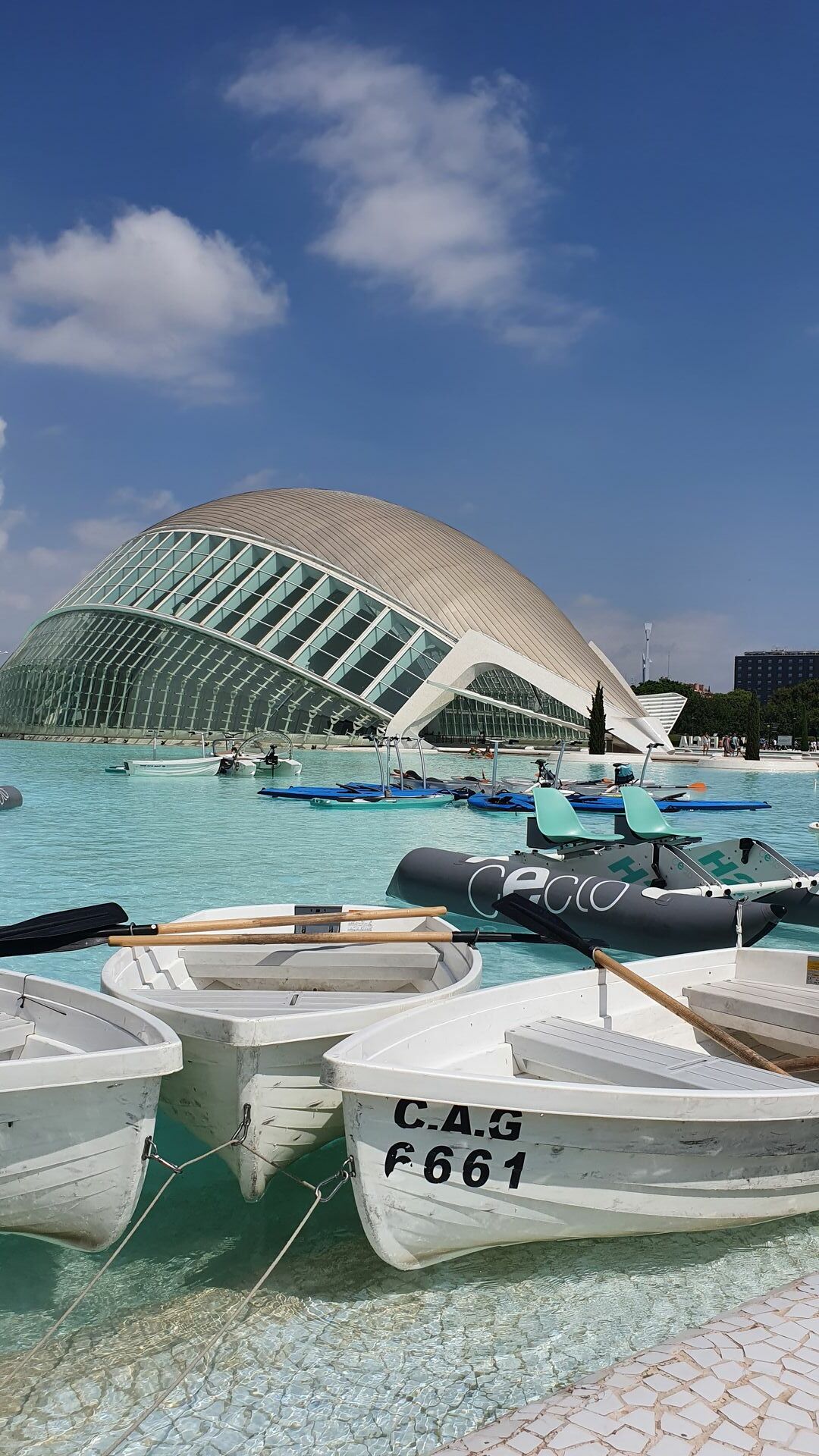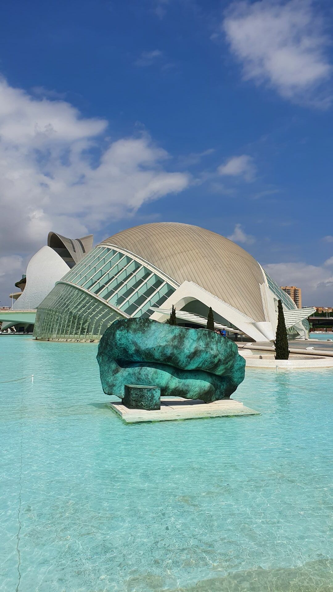 Im Anschluss schlenderten wir durch die schöne künstlerische Altstadt, ehe wir uns ein Taxi zum Cutat de les arts i les ciències nahmen. Die Sonne strahte mittletweile am Himmel und es war mega heiß. Angekommen an unserem Ziel suchten wir zunächst Schatten unter den Palmen, ehe wir die Kunstwerke im himmelblauen Wasser bewunderten.