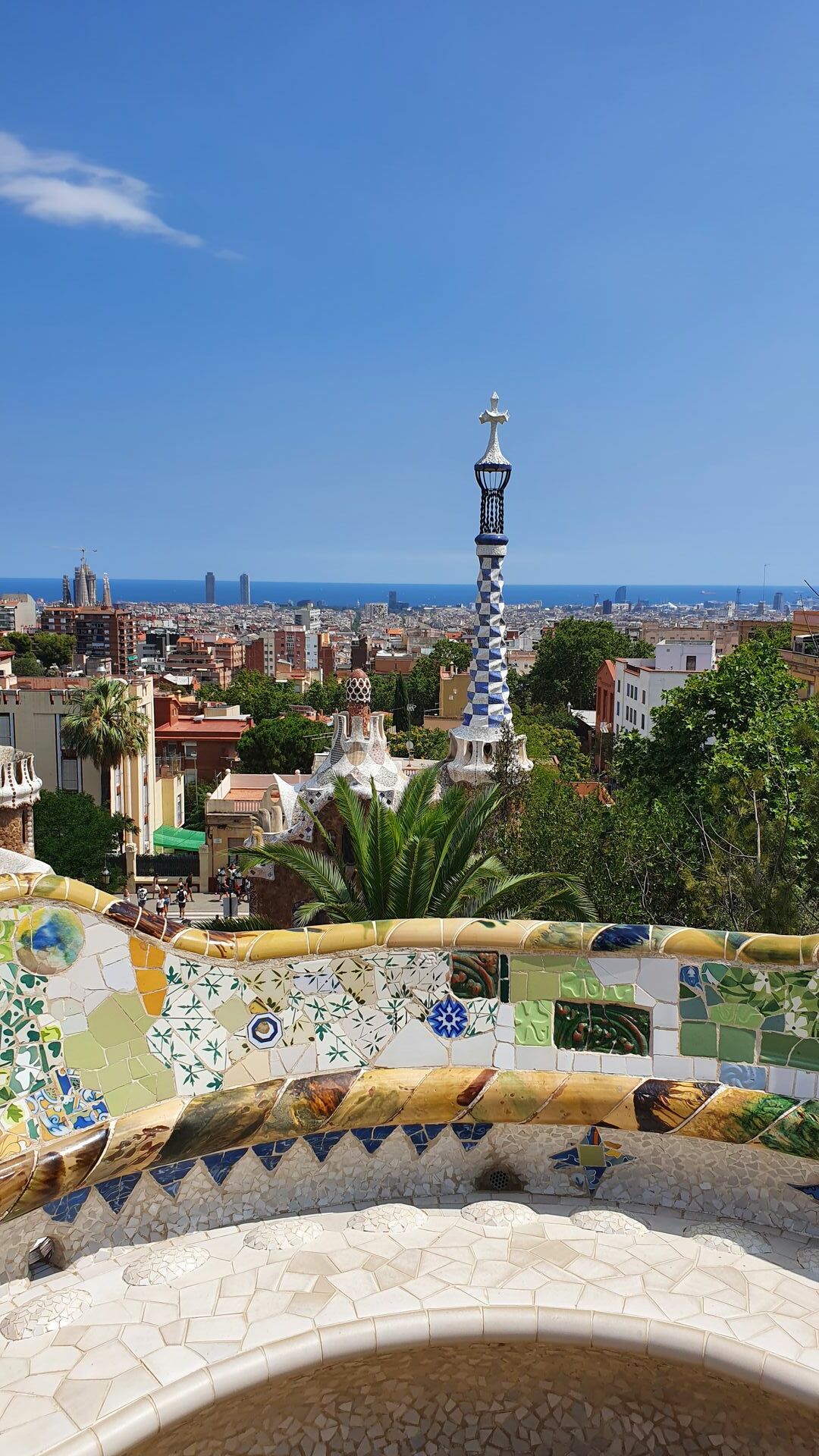 Danach stiegen wir in die grüne Linie um und fuhren zur Sagrada Familia. Nach ein paar Bildern suchten wir einen Churo Stand auf und gönnten und das leckere Gebäck. Danach fuhren wir weiter zum Park Güel. Nach kurzem Anstehen hatten wir für 10€/Person unsere Tickets und genossen das Highlight für uns an diesem Tag.