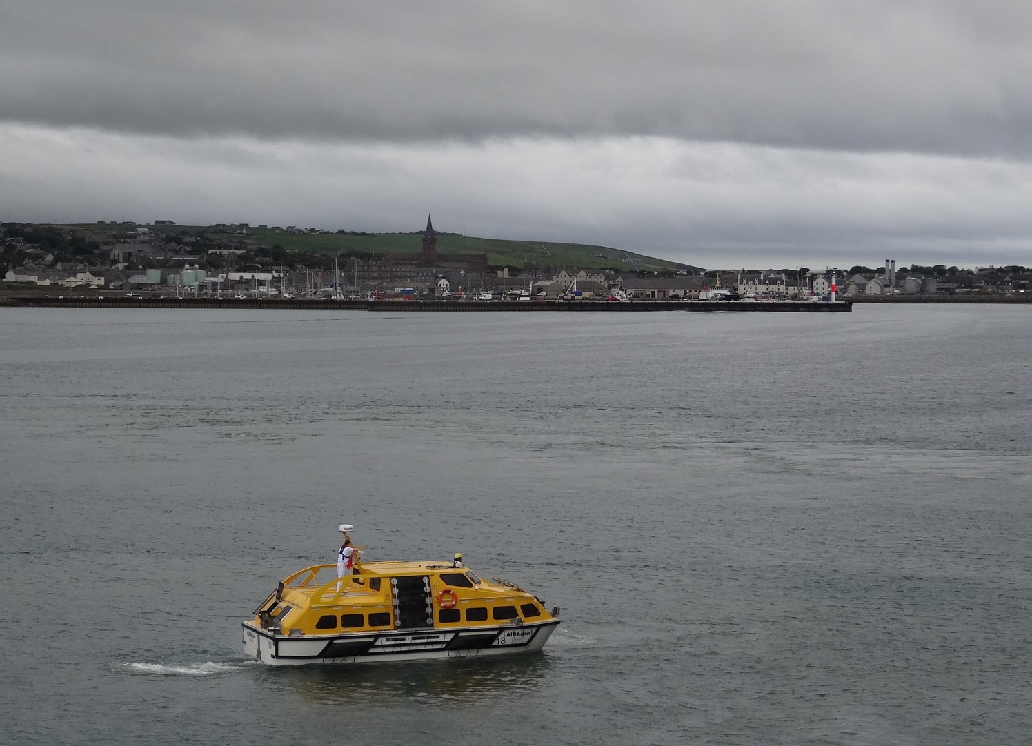 Kirkwall, die Kirchenbucht, und hier waren wir schon mal (weil der Hafen besetzt war wurde getendert)
