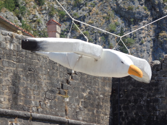 Heute Stand Kotor auf dem Plan - es waren sozusagen zwei Highlights an einem Tag. Zum einen die Stadt selbst, zum anderen die Einfahrt in die Bucht und die Durchfahrt der vier Engpassagen. Auf Hinweis der Lektorin und des Kapitäns bin ich deutlich früher aufgestanden, um mir eben diese Einfahrt nach Kotor anzusehen. Also ab auf den Aussenbereich von Deck 5, dort war es nicht so voll und man hatte eine gute Sicht auf die Küste. Eines vorweg, das frühere Aufstehen habe ich nicht bereut, ganz im Gegenteil. Wie alle um mich herum war auch ich fasziniert von der Landschaft und der Fahrt durch die immer enger werdenden Küsten. Neben der Landschaft, den Orten und der langsamen Fahrt an sich war natürlich ein Highlight, als direkt neben unserem Schiff eine Gruppe Delfine auftauchte. Leider ist mein Foto nicht so gut geworden. Über den Bordfunk wurden wir immer auf dem Laufenden gehalten, wo wir gerade sind und was es dazu wissenswertes gibt.