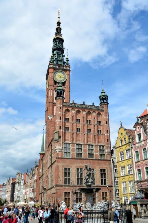 Der Neptunbrunnen oder der sich hinter ihm sich repräsentierende Artushof? Egal – schöner gab es nicht – beide waren ein Jahrhunderte alter Augenschmaus. Im 17. Jahrhundert wurde Danzig regelrecht aufgehübscht. Der Brunnen wurde nach einer Italienreise des Initiators als Gedenken und Verbundenheit Danzigs an das/mit dem Meer, der Artushof bereits einige Jahre zuvor als Sitz einer Bruderschaft der Danziger Kaufleute erbaut.