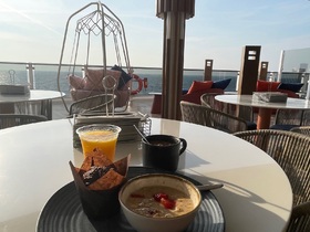 Gut geschlafen. Und nun in der Observation Lounge. Will am 9 Uhr in den shop um ein Modell Schiff zu kaufen aber da gibt es wohl keine mehr. Waren wohl schon am ersten Tag der Tauffahrt ausverkauft. Danach frühstücken. In der oberservation Lounge gibt es Mini Snacks und Café Milch Saft. Habe mir was mit Spiegelei im bagel geholt und ne Milch. Ich mag total das nestle Kakaopulver was ncl hat. Das löst sich mit kalter Milch nicht richtig auf und schmeckt dadurch aber total klasse.