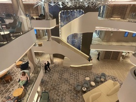 Modellschiffe sind aus. Dafür zweites Frühstück in der Food Hall. Da gibt es paar Sachen an den Ständen verteilt. Dies gehört evtl. noch optimiert weil man manchmal gar nicht genau weiß as es gibt. Eine omelet station sollte dort eigentlich auch gut gehen. Gibt es mehr so Sachem nehmen. Lachswrap, Müsli, Obstsalat süßen. Ansonsten gibt es Frühstück noch mit Bedienung im local oder hauptrestaurant Hudson. Und als Buffett im surfside oben.