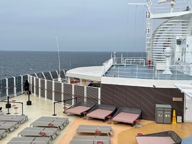Übrigens der Crew. Dürfte dann wohl als Wertschätzung gesehen werden. Der Bereich ganz vorne oben ist der aussenbereich mit bar für die Crew. Hier nur die Wand zu sehen. Links ist noch ein kleiner Raucher Bereich ( da gibt es an Bord nicht viele ) und rechts ist für Kinder was.an beiden Seiten ist dann eine Wand nach vorne
