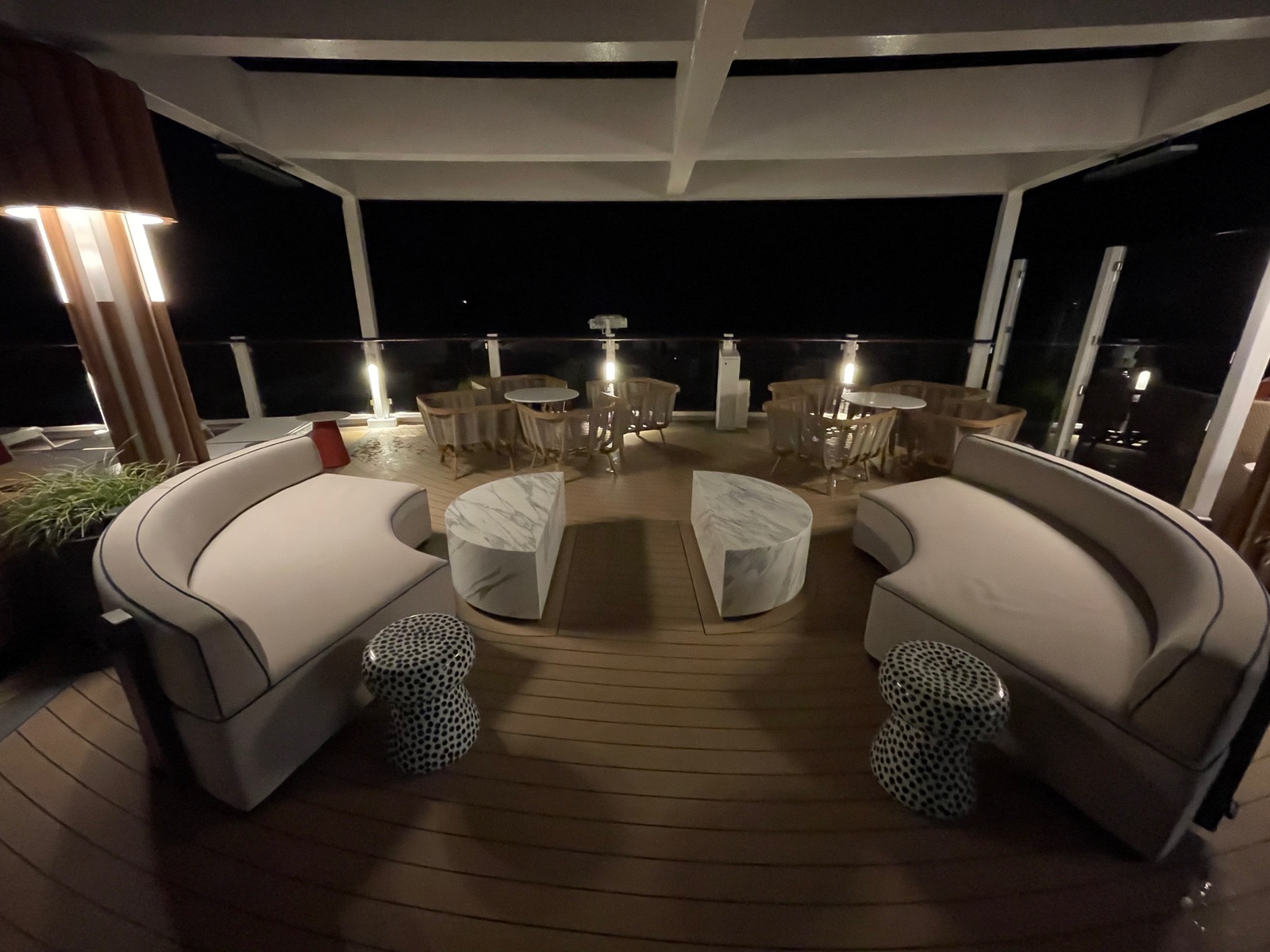 Übrigens der Crew. Dürfte dann wohl als Wertschätzung gesehen werden. Der Bereich ganz vorne oben ist der aussenbereich mit bar für die Crew. Hier nur die Wand zu sehen. Links ist noch ein kleiner Raucher Bereich ( da gibt es an Bord nicht viele ) und rechts ist für Kinder was.an beiden Seiten ist dann eine Wand nach vorne