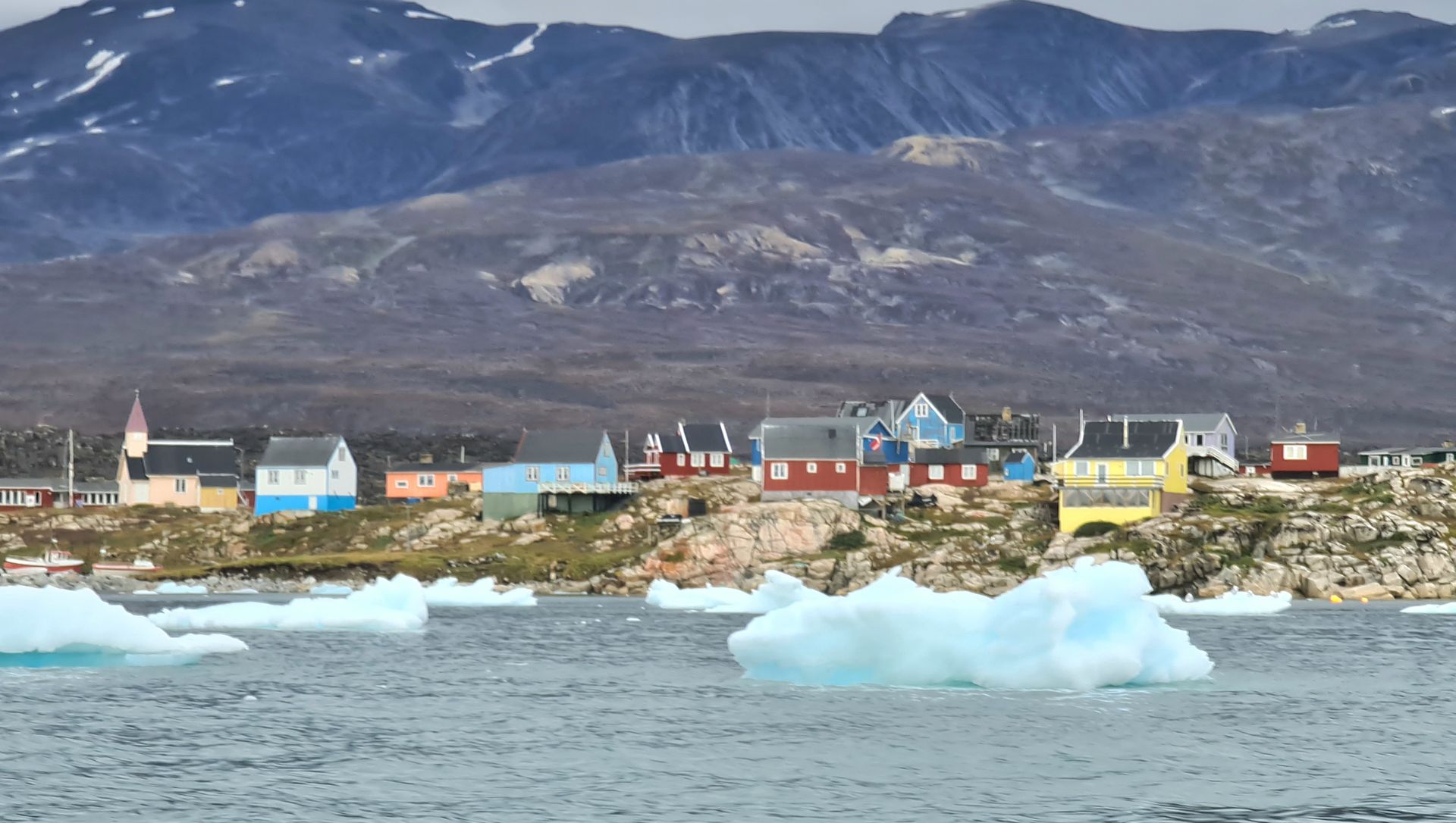Das Tagesprogramm wurde umgestellt. Am Vormittag fand wieder ein Vortrag von Herrn Dr. Feldmann statt. Dann gab es eine für alle Passagiere verpflichtende Einweisung in die Zodiac-Fahrten, die für den Nachmittag vor Saqqaq vorgesehen waren. Gleich im Anschluss daran erfolgte die Einteilung in Farbgruppen, die als Klebepunkte auf die Bordkarten geklebt wurden. In diesen Farbgruppen wurde man dann zu den Zodiac-Fahrte aufgerufen. Ab 12.00 Uhr fand das Mittagessenstatt, ab 13.30 Uhr lagen wir auf Reede vor Saqqaq. Das Örtchen hat nur 50 Einwohner. Sie wollen keine Fremden in ihrem Ort haben, daher findet keine Überfahrt in den Ort statt. Die großen Eisberge, die vor diesem Ort liegen, waren Ziel der Zodiac-Fahrten.