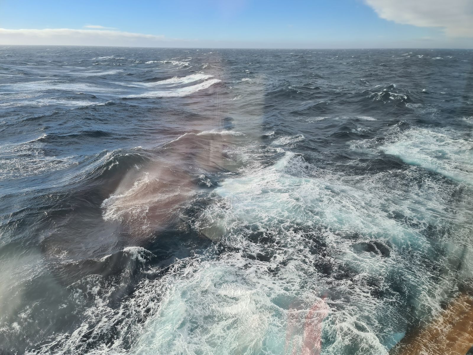 Draußen schaukelte es mächtig. Dank einer Reisetablette und gutem Essen machte es mir nichts aus.