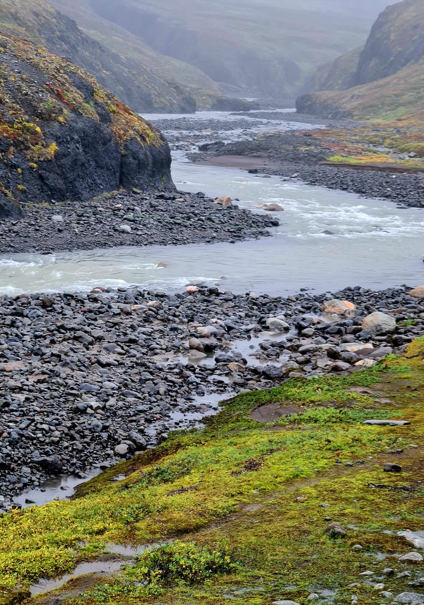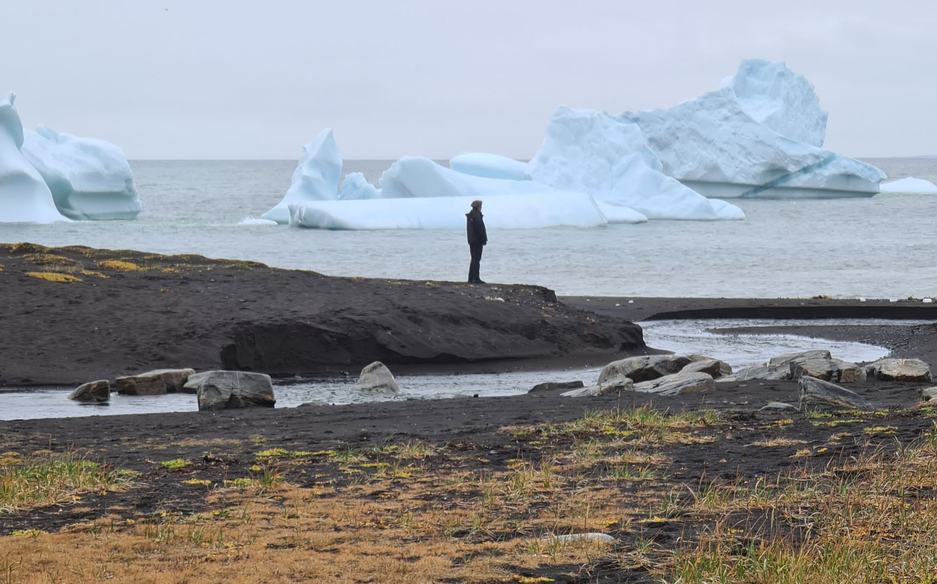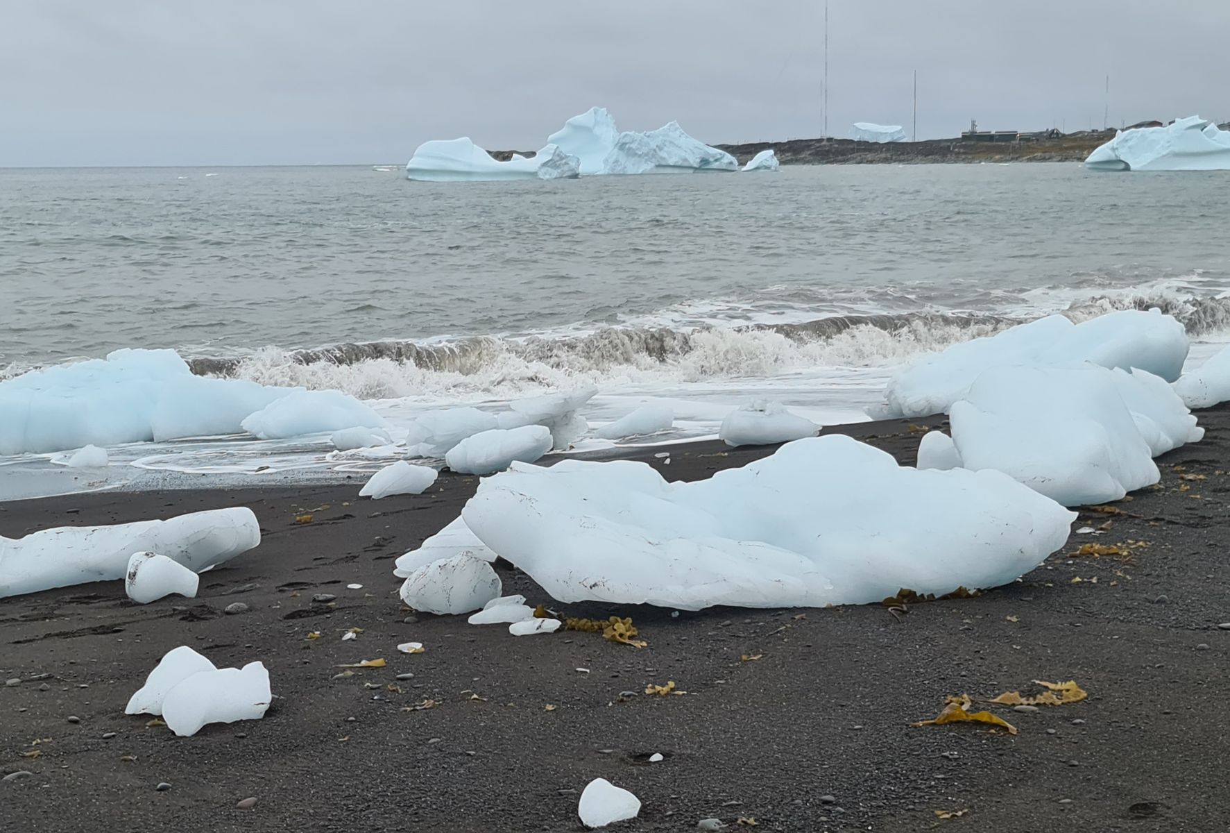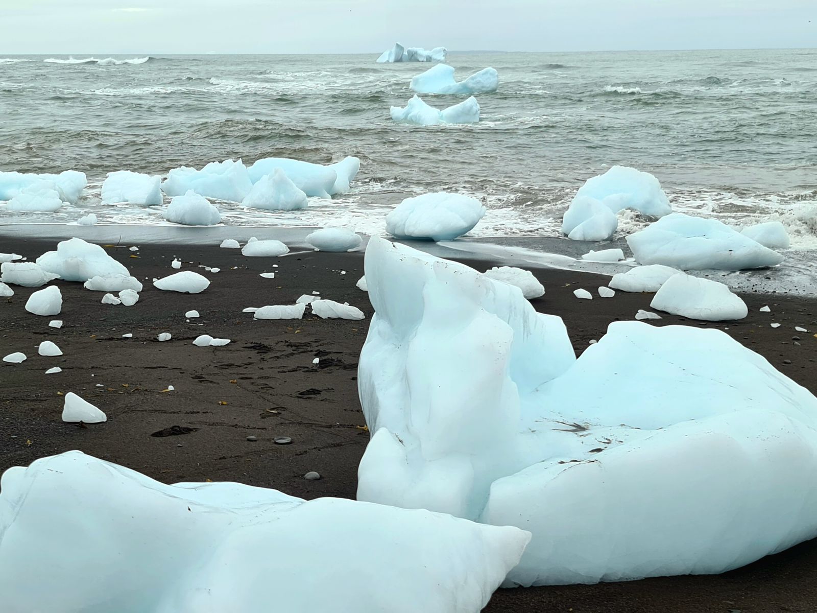 Wir liefen zuerst zum „Diamond-Beach“. Auf dem schwarzen Strand werden (genau wie am Jökulsarlon in Island) Eisabbrüche aus dem Meer an Land gespült. Das sieht teilweise sehr faszinierend aus, vor allem, wenn die Sonne darauf scheint. Nur an Sonne fehlte es mal wieder, es war sehr trüb und der Regen eine Frage der Zeit.