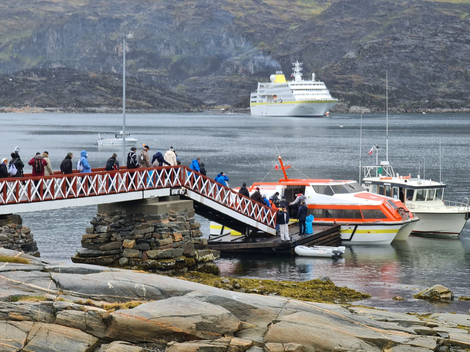 Gegen 13.00 Uhr fuhren wir mit dem Tenderboot zurück zum Schiff und genossen das Mittagessen. Das letzte Tenderboot fuhr um 14.30 Uhr und um 15.00 Uhr startete die MS Hamburg in Richtung Ilulissat.