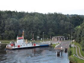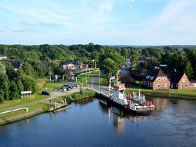 Oldenbüttel wurde erreicht. Und damit auch die Fähre, die unsere Vorbeifahrt abwarten musste.