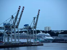 Alles wartete. Wann war es endlich so weit, dass wir uns den Schleusen nähern durften? Jetzt! Und so nahmen wir nebenbei mit, dass MeinSchiff 3 und die MSC Fantasia bereit waren, weiter ihre Passagiere aufzunehmen. Die auch an diesem Tage auf ihr sail-away wartende AIDAvita hatte sich vor uns versteckt – sie lag ein wenig stadtwärts am Sartorikai.