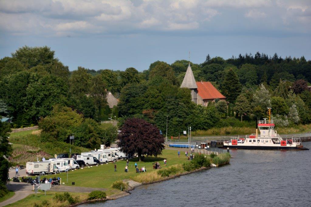 Auf der anderen Kanalseite wartete vor der Feldsteinkirche in Sehestedt eine Fähre, dass wir endlich verschwanden.