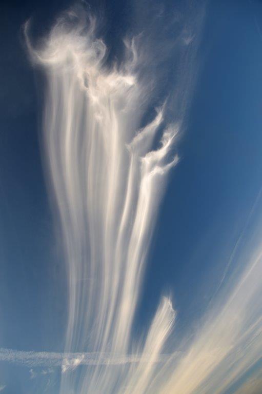 Danach wurden wir von oben abgelenkt. Nein, kein Regen – der hätte uns gefehlt … Nein, ungewöhnliche Wolkenformationen, die uns für einige Minuten vergessen ließen, was links und rechts zu sehen war.