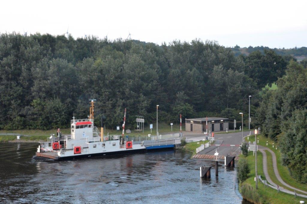 Oldenbüttel wurde erreicht. Und damit auch die Fähre, die unsere Vorbeifahrt abwarten musste.