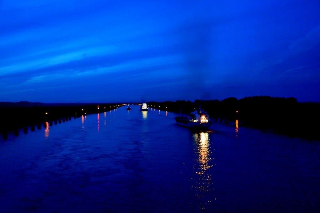 Das wahre Stilleben … Dann legte sich ziemlich schnell die Dunkelheit auf uns, unsere AIDAcara, den Kanal und die an uns vorbei gleitende Landschaft.
