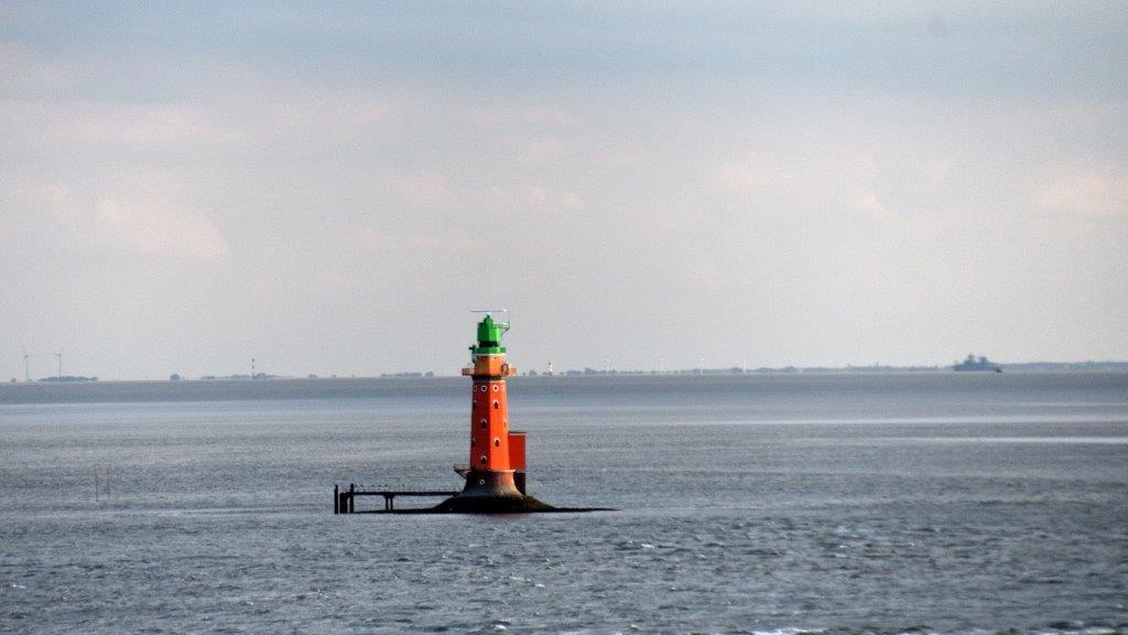 Unser Schiff passierte das älteste, in der Außenweser liegende Leuchtfeuer Deutschlands, den Leuchtturm Hohe Weg,