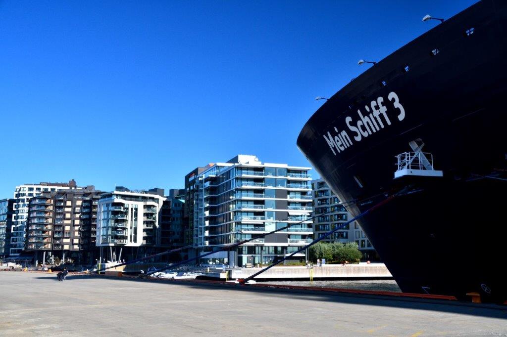 Mein Schiff 3 legte gefühlsvoll ab, drehte nach langsamem Rückwärtsfahren auf dem Handtuch und nahm dann Kurs auf den Oslofjord.
