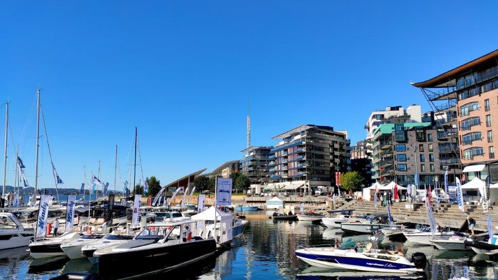 Der Zugang zu den Pontons war für Normalsterbliche wie wir es waren gesperrt; die Security passte auf, dass sich kein Unbefugter den großen und kleinen Schiffchen näherte. Einige Meter weiter ein Kuriosum: Am Kai waren mehrere schwimmende Saunen angetäut. Nicht schlecht für Liebhaber des Saunierens– nach dem schweißtreibenden Saunagang ein Sprung in den Fjord!