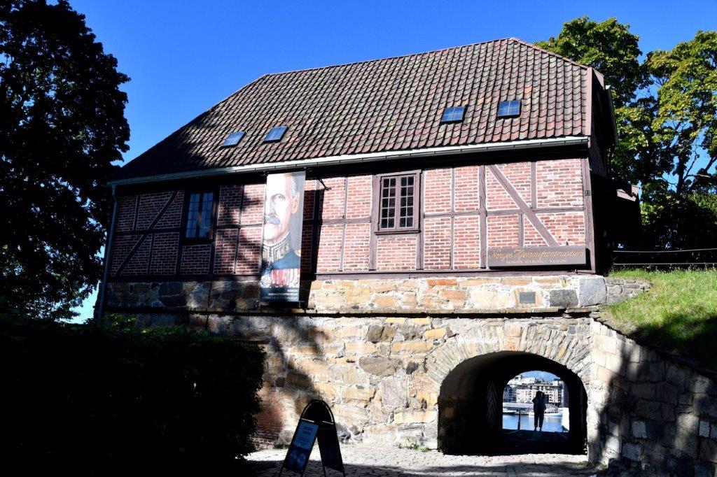 Ganze drei Meter waren die Mauern dick. Schwer zu erstürmen. Wir waren nach wenigen Metern im inneren Bereich. Zum Glück war alles friedlich. Wir auch! Wir wollten nur besichtigen. Wie das auf dem Wall erbaute Fachwerkhaus, das seit einigen Jahren als Heimatfrontmuseum diente. Also auch zu friedlichen Zwecken. Wie auch andere Teilbereiche, denn nach Jahrhunderten langen Funktionen im militärischen Bereich wird die Festung heute als Multifunktionsobjekt verwendet: ein Teilbereich zu Repräsentationszwecken für die norwegische Regierung, ein anderer als Grablege der norwegischen Könige der Neuzeit, ein dritter wiederum im militärischen Sektor und daneben gibt es noch einen frei zugänglichen Freizeitbereich.