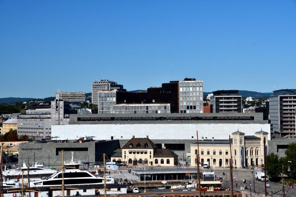 Hinter dem modernen, aber keinesfalls hässlichen Klotz mit klaren Linien verbirgt sich das Nationalmuseum, vor dem das im ehemaligen Westbahnhof untergebrachte Ausstellungszentrum, in dem rund um den Friedensnobelpreis informiert wird, regelrecht winzig erscheint.