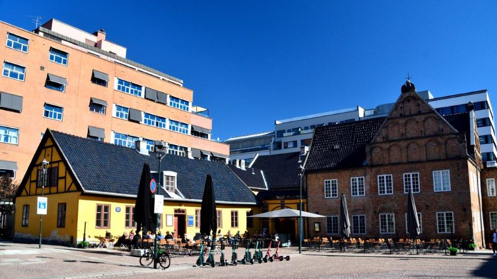 Kvadraturen hört sich norwegisch niedlich an. Was steckt hinter diesem Begriff? Eindeutig Quadratur. Wenn man sich dieses Viertel von oben anschaut, weiß man auch warum. Straßen teilen den Stadtteil in Quadrate. Gut, auch in Rechtecke. Nach einem Stadtbrand Mitte des 17. Jahrhunderts entschied der damalige König Christian IV, dass das neue Oslo nach den damaligen Renaissance-Vorstellungen direkt unterhalb der Festung Akershus entstehen sollte. Klare Linien = Kvadraturen wurden vorgegeben; außerdem gab es die Bestimmung, dass aus Brandschutzgründen nur Steinhäuser errichtet werden durften. So geschah es – aber leider blieben bis heute nur noch wenige alte Bauten übrig. Bis auf einige Häuser am Christiania Torv, ein Kleinod fast am Rande des Viertels.