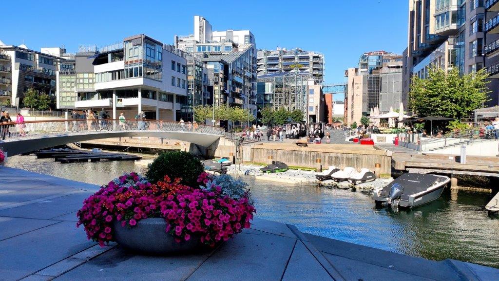 Von hier aus war es nicht mehr weit bis zu unserem letzten Besichtigungsziel. Anlässlich der ab der Jahrtausendwende geplanten Umgestaltung der Hafengegend wurde ein Industriegebiet ratzekahl verändert. Dort, wo im 18. Jahrhundert, also vor Beginn der norwegischen Industrialisierung eine nicht gerade einladende Gegend war. Tjuvholmen hieß und heißt diese kleine Landzunge. Auf deutsch „Insel der Diebe“. Diese „guten“ (?) alten Zeiten liegen lange hinter uns und i.R.d. Großprojektes „Fjordbyen“ (Stadt am Fjord) entstand dort ein architektonisches Wunderwerk.