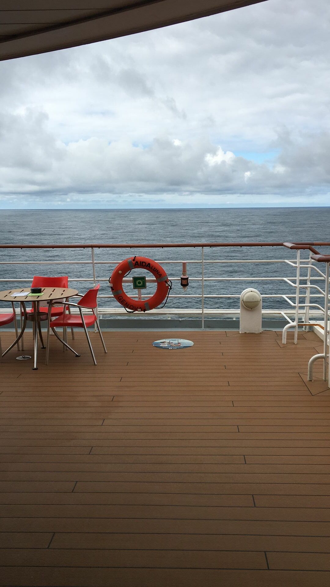Am Nachmittag, zurück auf dem Schiff, können wir sogar einige Sonnenstrahlen auf unserem Balkon genießen.