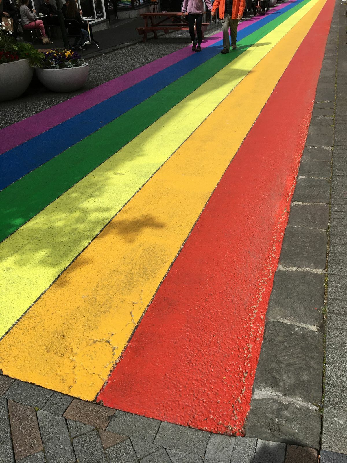 Wir besichtigen die Hallgrimskirche, die größte Kirche Islands, und laufen dann hinunter zur Regenbogenstraße. Ich kaufe ein Paar nützliche Wollhandschuhe für unser daheim gebliebenes Kind und einen weniger nützlichen Magneten für unseren heimischen Kühlschrank. Wir essen Zimtschnecken und trinken Kaffee. Wir lassen uns treiben, durch die mehr oder weniger schöne Stadt.