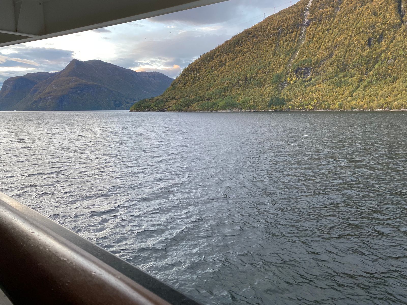 Zum Frühstück meldete sich Kapitän Becker mit der frohen Kunde, dass Petrus es gut mit uns meint und lud zur Durchfahrt "an Deck" ein, da er immer wieder Informationen zum Fjord von der Brücke aus über die Lautsprecher durchgeben werde und es auch ein paar kulinarische Annehmlichkeiten gäbe (heißer Sanddorn und Kuchen).