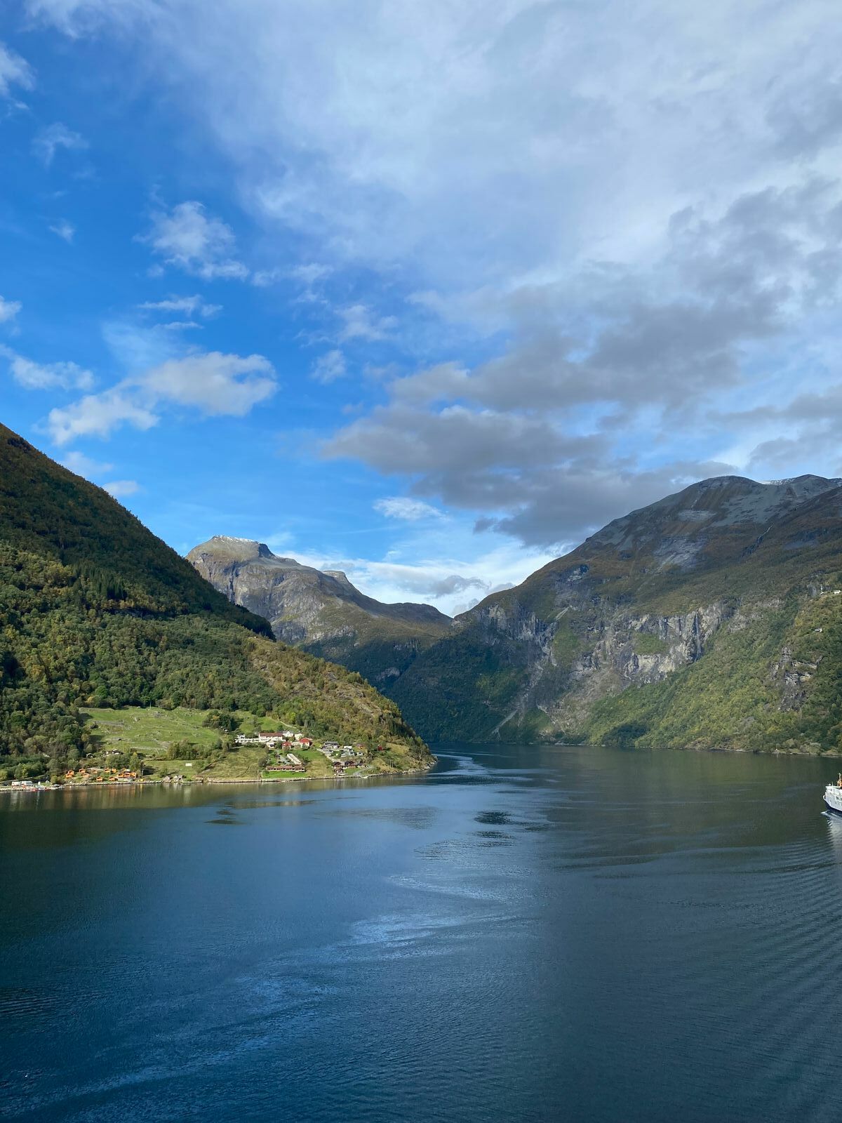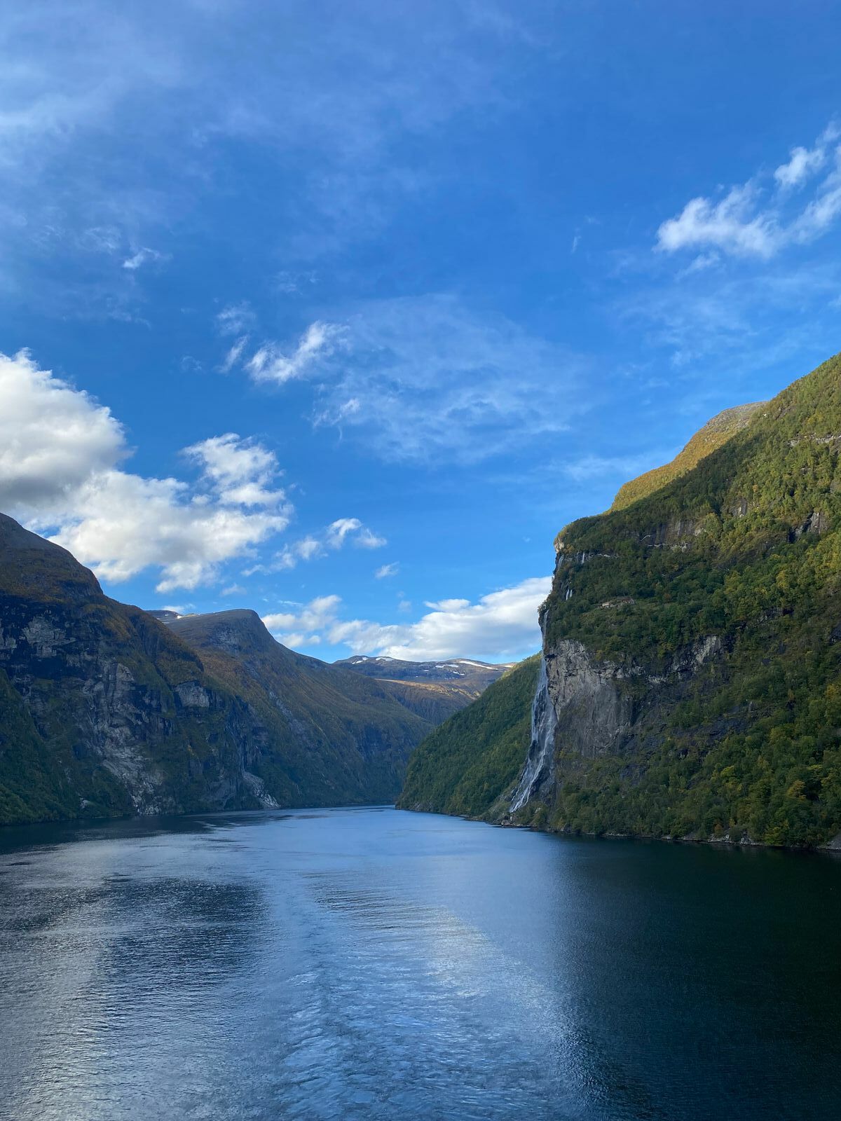 Wegen des Seegangs konnte die Perla die Strecke von Haugesund zum Geirangerfjord nicht in der erhofften Geschwindigkeit zurücklegen, sodass der Zwischenstopp in Hellesylt ausfallen musste. Die Fahrt durch den Fjord und der Aufenthalt in Geiranger waren davon zum Glück nicht betroffen.