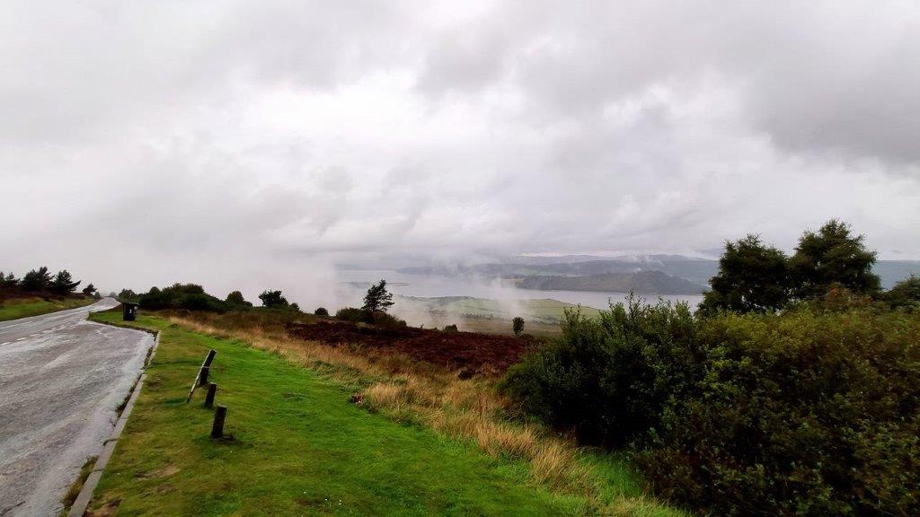 Beeindruckend, der Blick auf den Dornoch Firth. Die Wolken hingen noch immer tief. Nebelschwaden. Mystisches Schottland. Auf der anderen Seite der Straße weitläufige Erikafelder. Die Lüneburger Heide könnte neidisch werden …