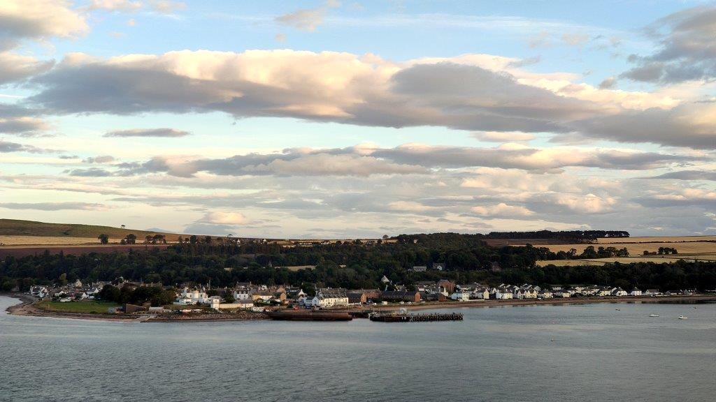 Nach einem weiteren Regenabschnitt standen wir wieder vor unserem Schiff. Was passierte dort? Der Regen nahm Reißaus. Streifen blauen Himmels kündigten ein Wunder an: Die Sonne erwies uns die Ehre! Teile des Städtchens Invergordon sahen unter ihr viel sympathischer aus.