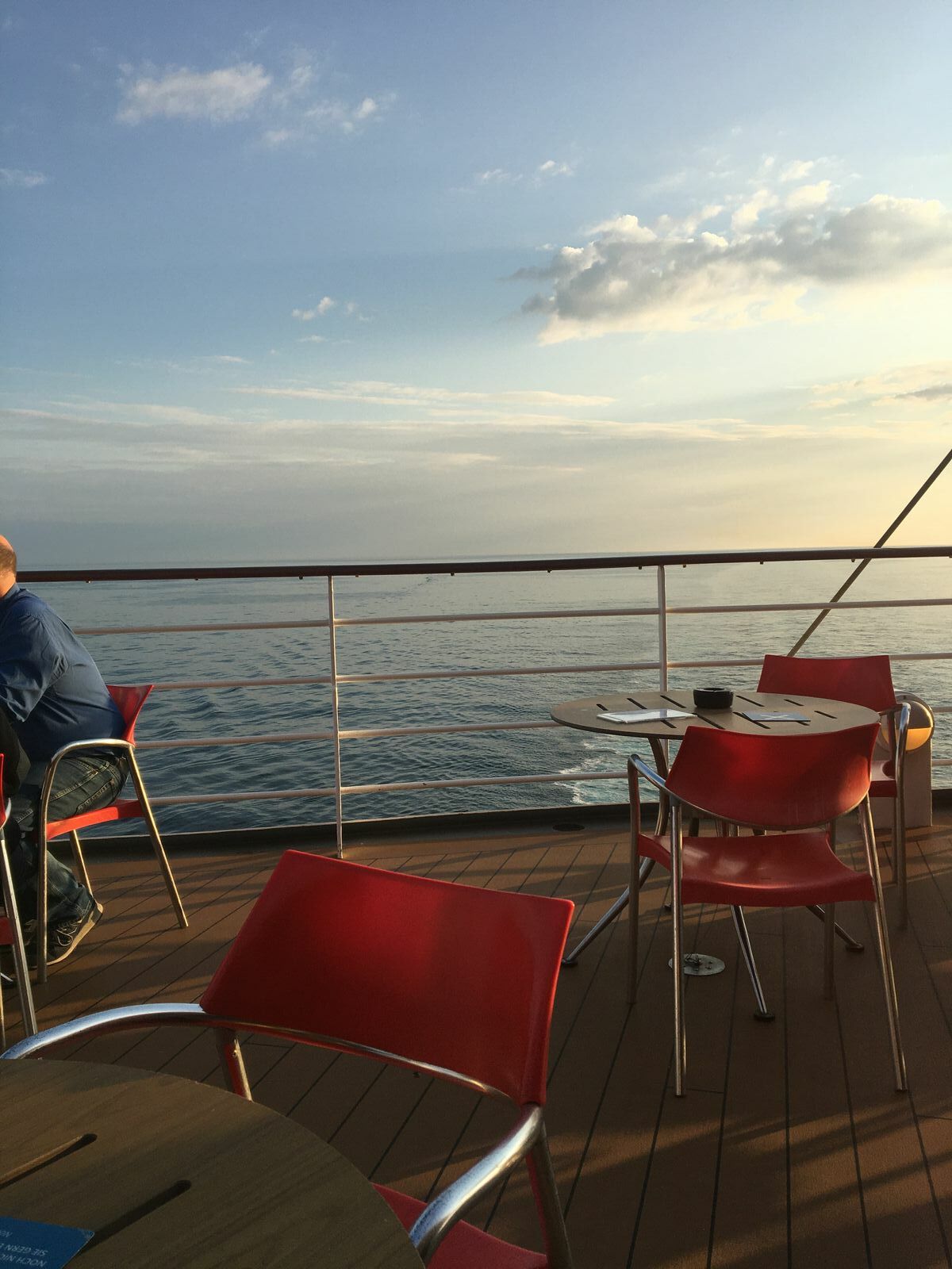 Nach dem Abendessen im Marktrestaurant können wir heute sogar unser Kaltgetränk an der Oceanbar einnehmen. Es ist herrlich, sonnig und lange nicht so kalt wie die letzten Tage.