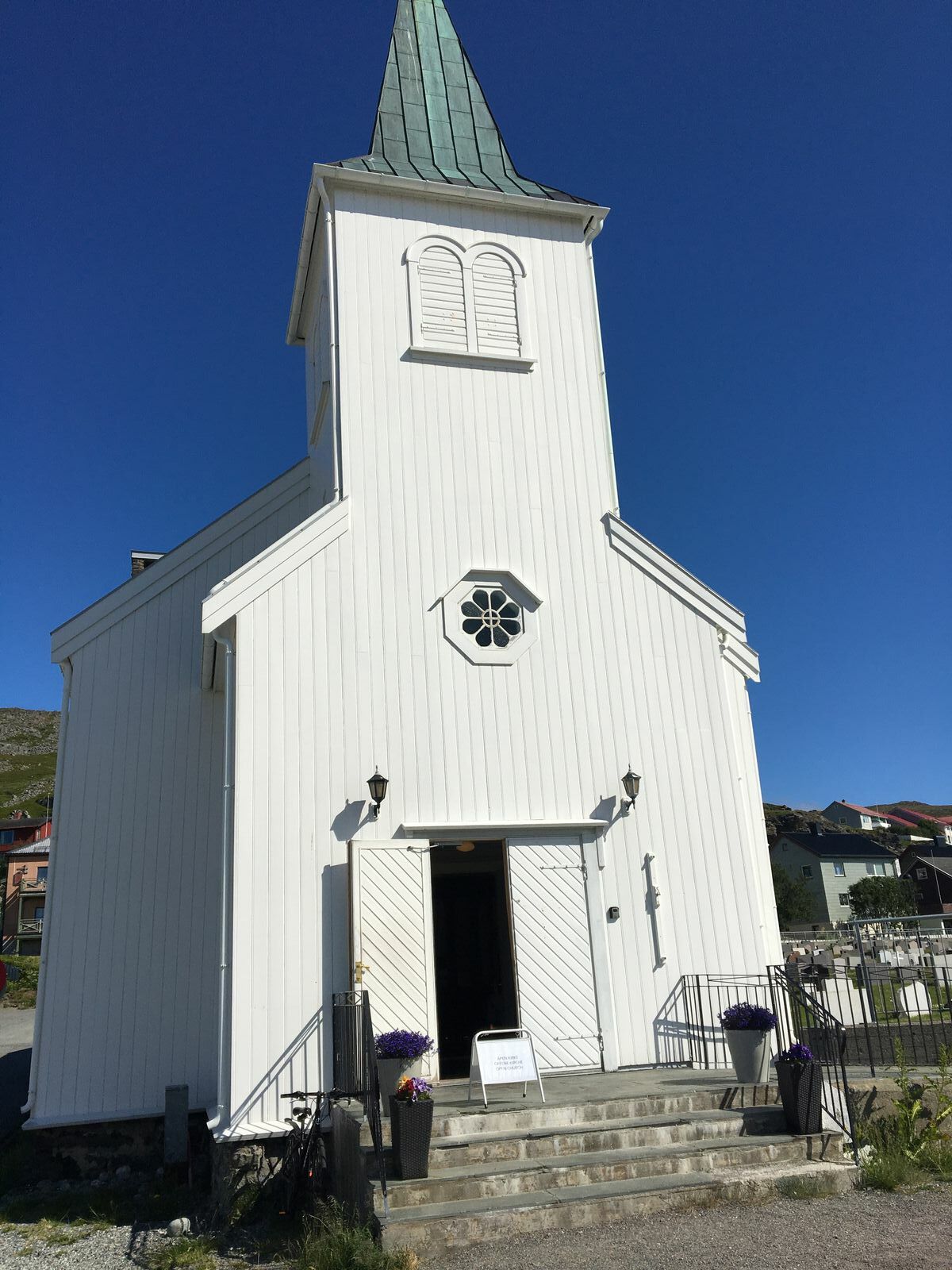Wir machen einen schönen Spaziergang, vorbei an Fischerbooten, durch Wohnviertel bis hinauf zur weißen Holzkirche von Honningsvag. Die Kirche wurde im Jahr 1885 erbaut und war nach dem Abzug der deutschen Besatzer 1944 das einzige Gebäude der Stadt, das nicht zerstört wurde. Nach der Rückkehr der zuvor evakuierten Einwohner im Sommer 1945 diente sie bis zum Winter 1945 als deren Unterkunft.