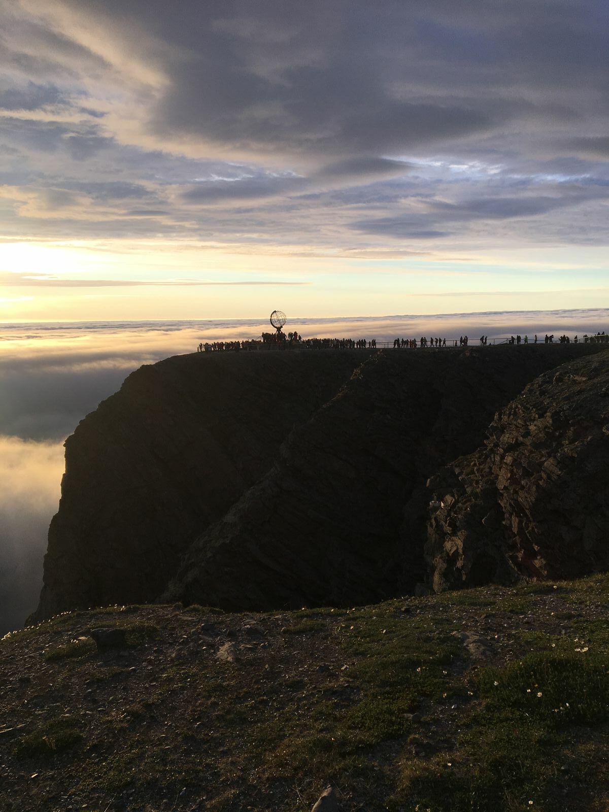 Auf der Strecke liegt immer mal wieder dichter Nebel über den Wiesen, aber als wir endlich das Nordkap erreichen, haben wir eine tolle Sicht.