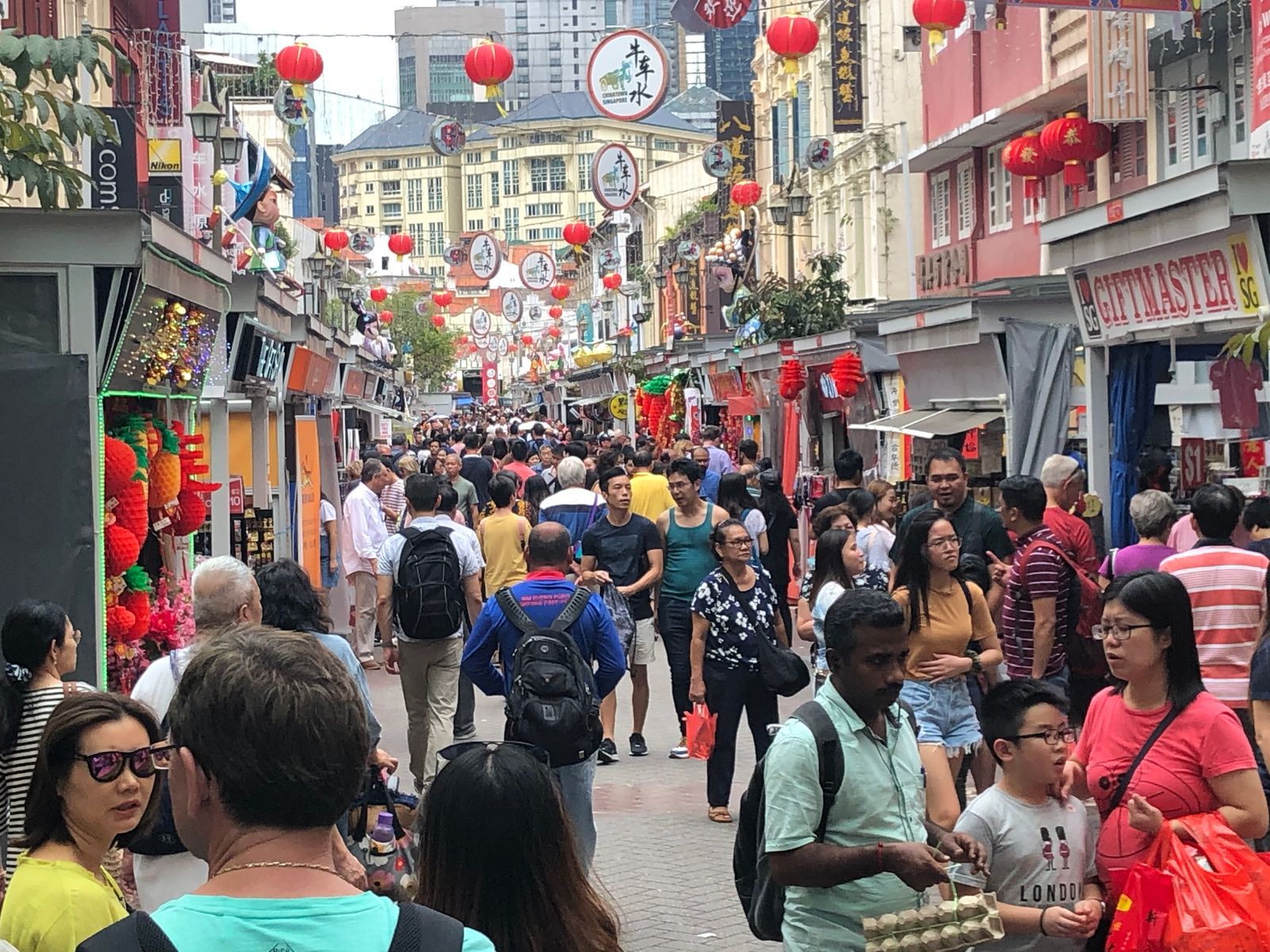 In Chinatown stiegen wir also aus. Die Rolltreppe aus der MRT-Station führte mitten in die Hauptstraße Chinatowns, in die Pagoda Street. Mit „mitten“ ist wirklich die Mitte der Straße und des Gewusels gemeint: