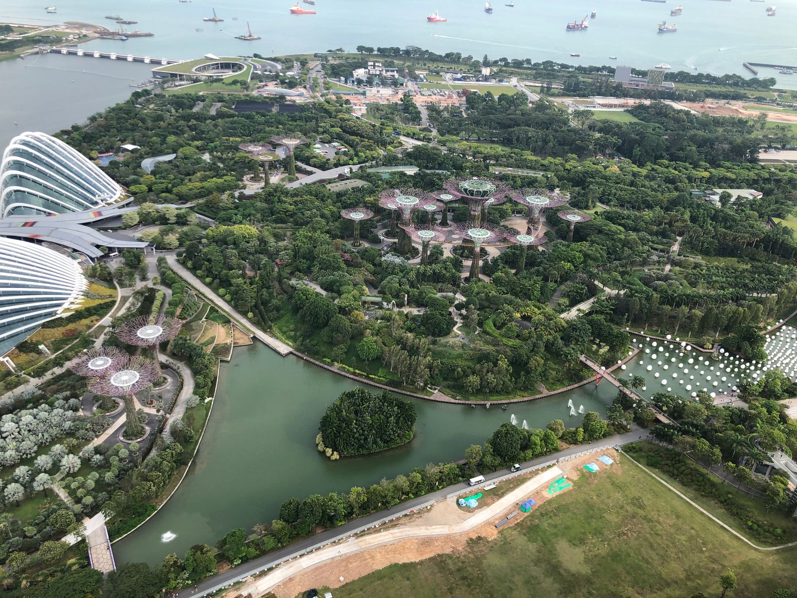 Dort wollten wir heute auch noch hin. Aber nicht, bevor wir einen Singapur Sling getrunken hatten, den wir uns an der Bar auf dem SkyPark holten. Eisgekühlt und richtig lecker. So, nun konnte es weitergehen – zu den Super Trees in den Gardens by the Bay.