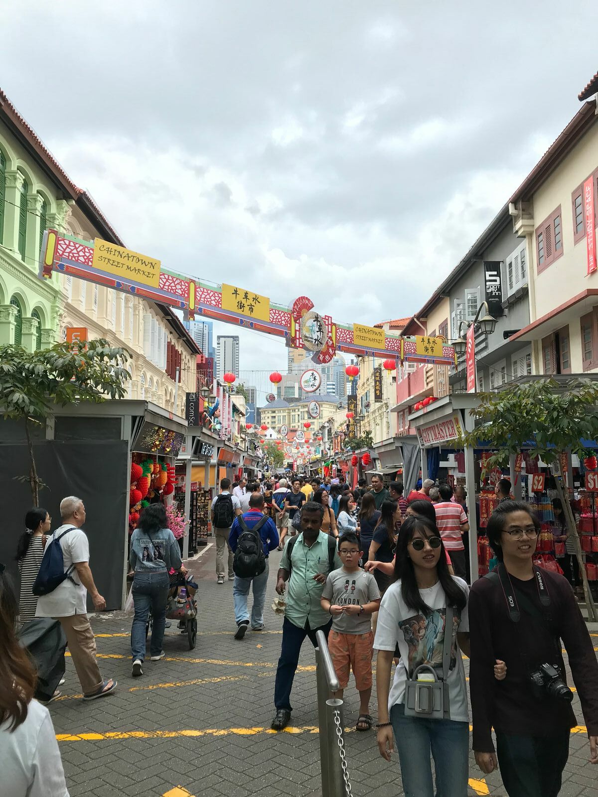 In Chinatown stiegen wir also aus. Die Rolltreppe aus der MRT-Station führte mitten in die Hauptstraße Chinatowns, in die Pagoda Street. Mit „mitten“ ist wirklich die Mitte der Straße und des Gewusels gemeint: