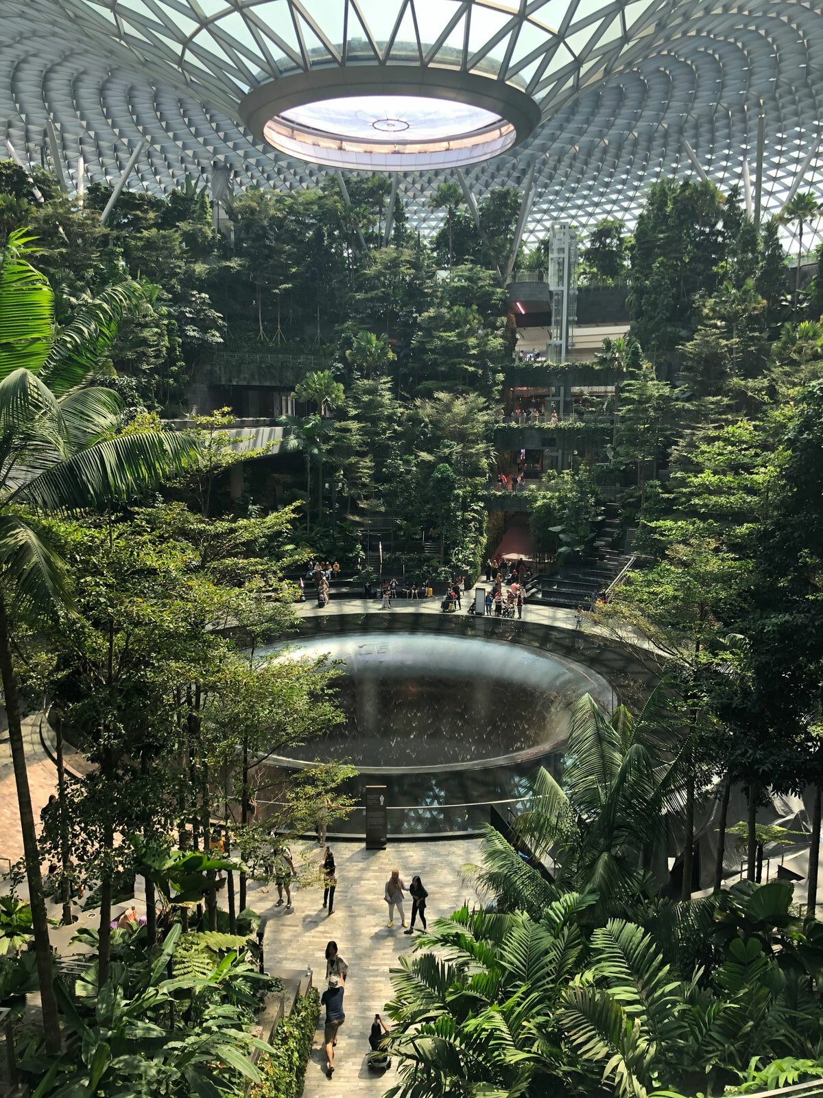 Da wir bis zur Boarding Time noch 1 ½ Stunden Zeit hatten, besichtigten wir noch einen kleinen Teil des Flughafens, der ist schon eine Attraktion für sich. So kamen wir zum „Jewel“, ein Freizeitareal mit Geschäften und dem größten Indoor-Wasserfall der Welt, der aber wegen Wartungsarbeiten nicht angeschaltet war.