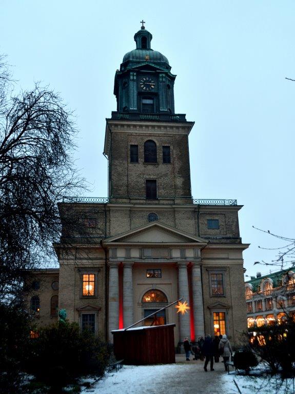 Nach der Stadtgründung wurden viele protestantische Einwanderer wie Niederländer, Deutsche und Schotten ins Land geholt. Sie waren wichtig für die schnelle Entwicklung Göteborgs, z.B. die Niederländer als Spezialisten im Stadtbau. Ihren Einfluss zeigten sie, indem sie das seinerzeitige Stadtbild mit vielen Grachten prägten, von denen leider viele im Laufe der Zeit zugeschüttet wurden. Die Fremdstämmigen blieben in der Verwaltung nicht außen vor. So bestand der Stadtrat von 1641 aus vier Schweden, je drei Deutschen und Holländern und zwei Schotten. So, nun der Bogen zur Deutschen Kirche: Sie wurde für die Einwanderer gebaut. Die jetzige Ausgestaltung stammt aus dem Jahre 1783, nachdem die Vorgängerkirchen zweimal Bränden zum Opfer fielen. Interessant ist, dass noch heute der Pfarrer von der deutschen Evangelischen Kirche gestellt wird.