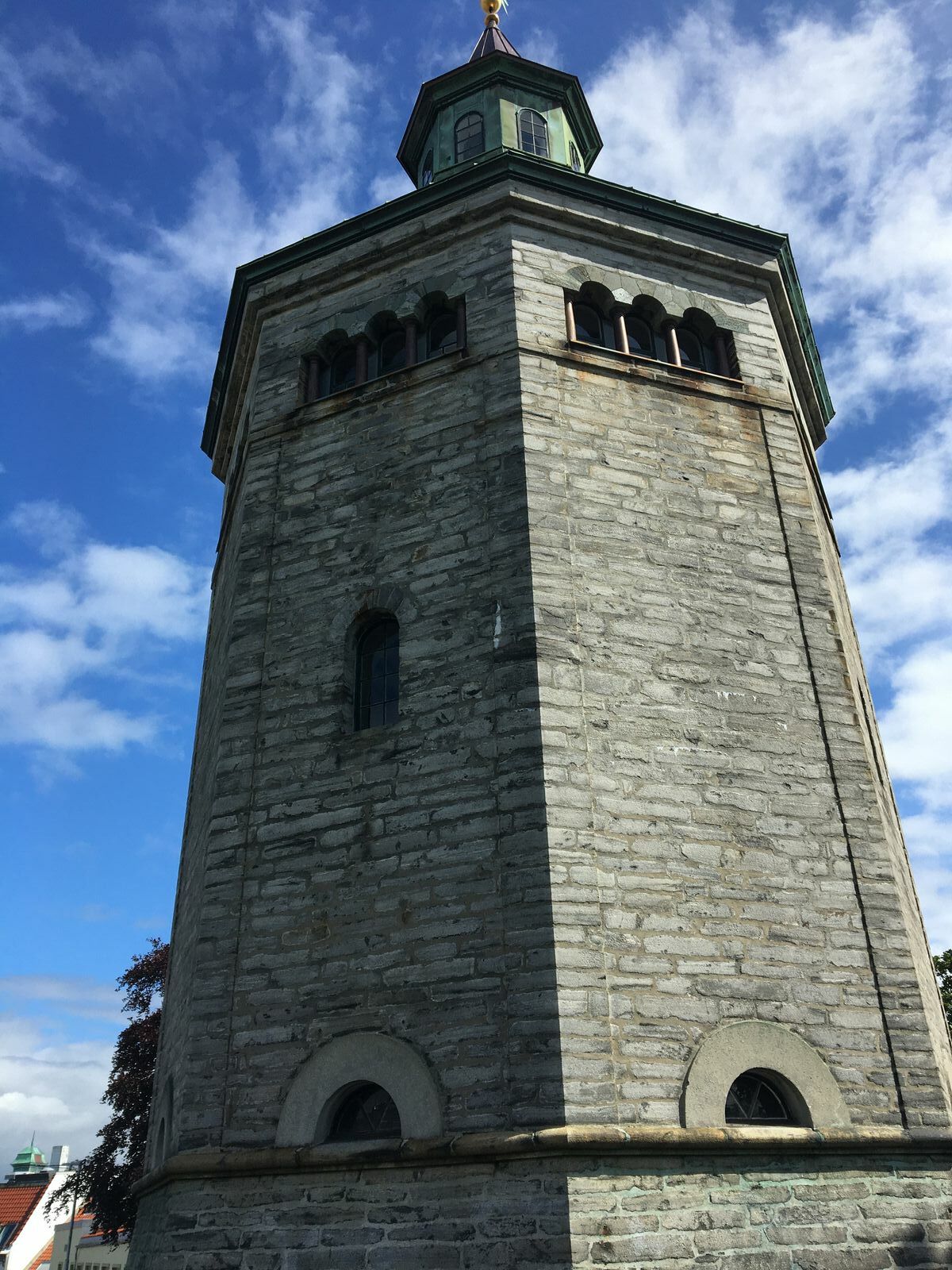 Ihr gegenüber liegt das Einkaufsviertel von Stavanger, mit vielen Geschäften und Restaurants.